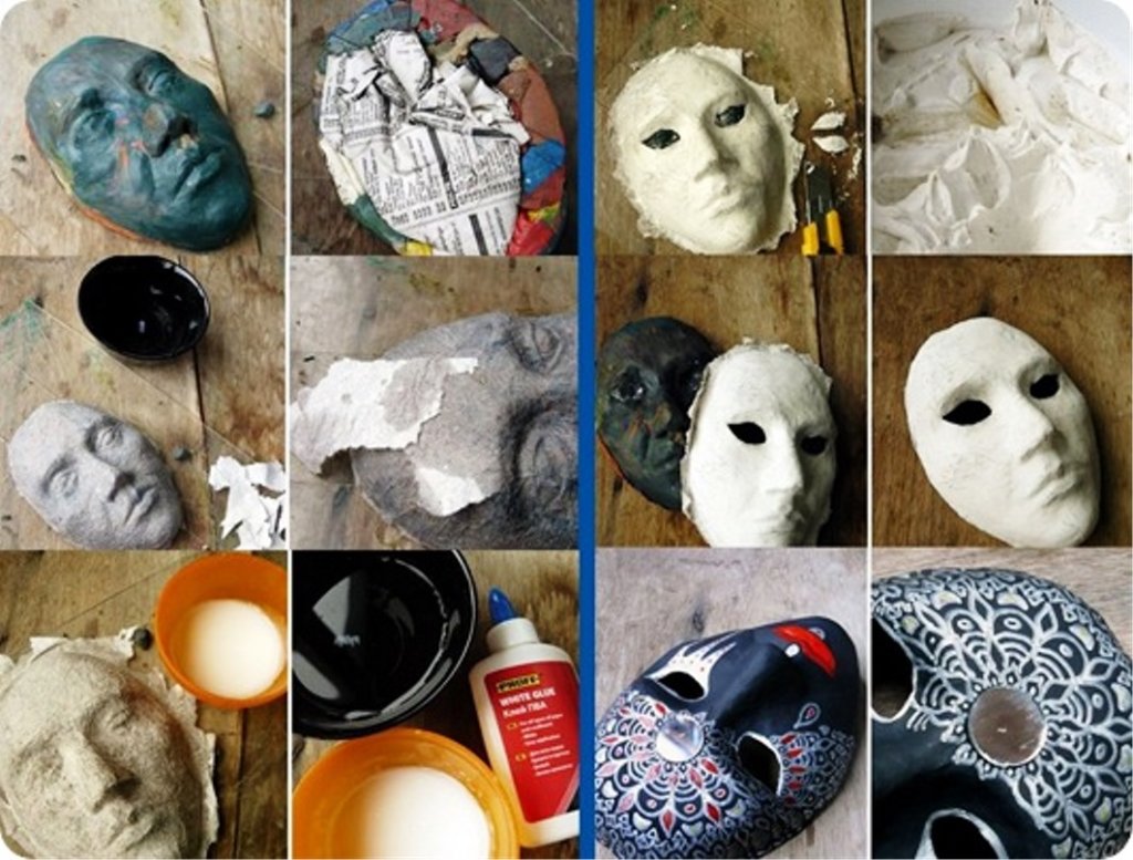 2. Отделить маску от формы. Раскрасить получившуюся маску, дать краске высохнуть.