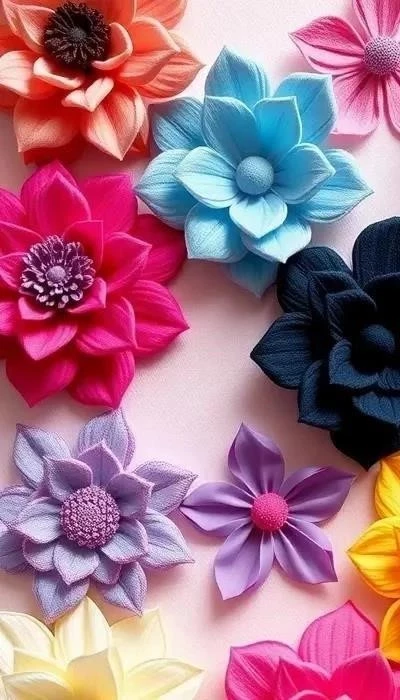 Тканевые цветы отличаются мягкостью и реалистичностью, идеально подходят для создания нежных и романтичных аппликаций. Они прекрасно сочетаются с тканевыми основами и позволяют добиться плавных переходов цвета.