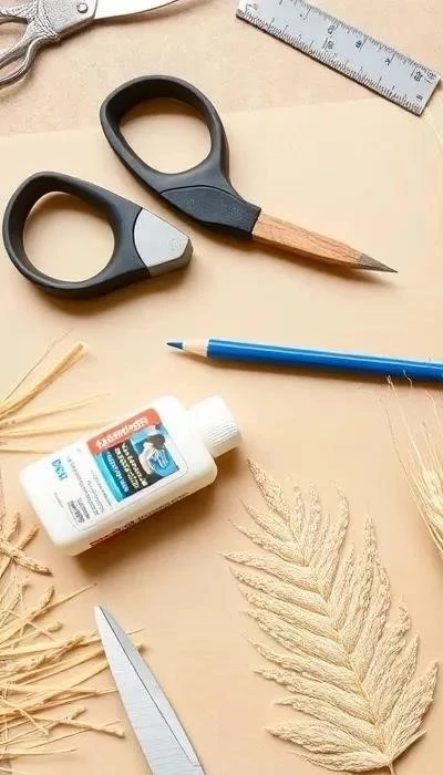 Для резки соломы идеально подойдут острые маникюрные ножницы или модельный нож. Важно, чтобы инструмент был хорошо заточен, чтобы избежать заломов и неровностей. Также пригодится небольшая кисточка для удаления лишнего клея.