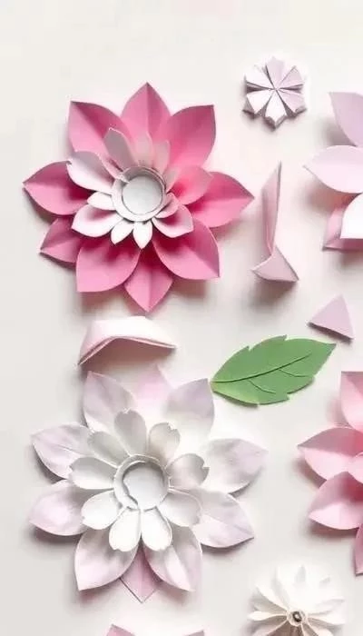 После того, как все круги склеены, слегка отогните лепестки вверх, чтобы придать цветку объем и реалистичность. Для этого можно использовать зубочистку или пинцет. Вырежьте из зеленой бумаги листья и приклейте их к основанию цветка.