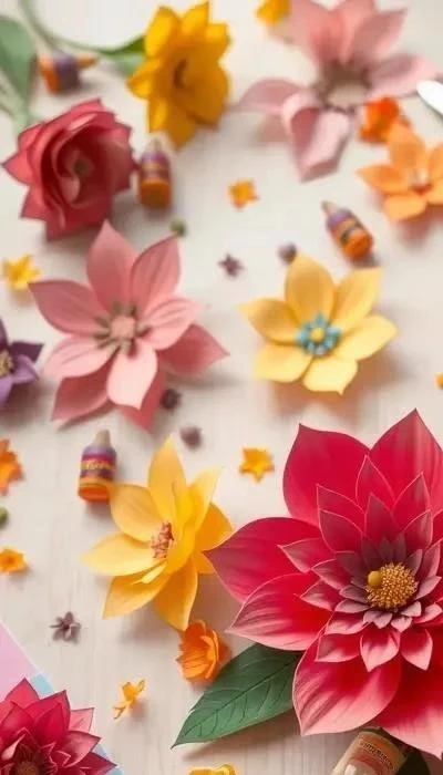 Не обойтись без качественного клея. ПВА – отличный вариант для бумаги, клеевой пистолет – для более плотных материалов и быстрого склеивания. Ножницы – обычные и фигурные – помогут вырезать лепестки, листья и другие детали. Шаблоны цветов значительно упростят процесс, особенно для начинающих.