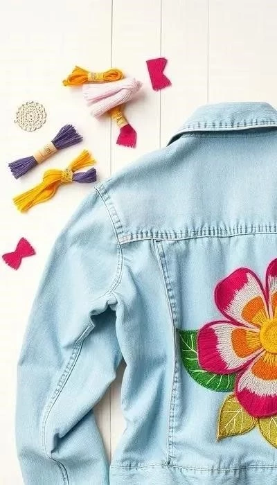 Шаг 5: Закрепление и завершение. После того, как все детали аппликации пришиты, закрепите нить и обрежьте ее. Удалите булавки. При необходимости, прогладьте аппликацию утюгом через ткань, чтобы зафиксировать ее. Ваша стильная джинсовая куртка с аппликацией своими руками готова! Помните, что кастомизация джинсовой куртки – это творческий процесс, поэтому не бойтесь экспериментировать и добавлять свои собственные элементы.