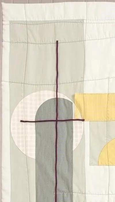 2. Геометрическая гармония: Используйте трафареты для создания геометрических фигур (круги, квадраты, треугольники). Вырежьте фигуры из ткани контрастных цветов и пришейте их к покрывалу в определенном порядке. Уровень сложности: легкий. Материалы: хлопчатобумажные ткани, трафареты, нитки.
