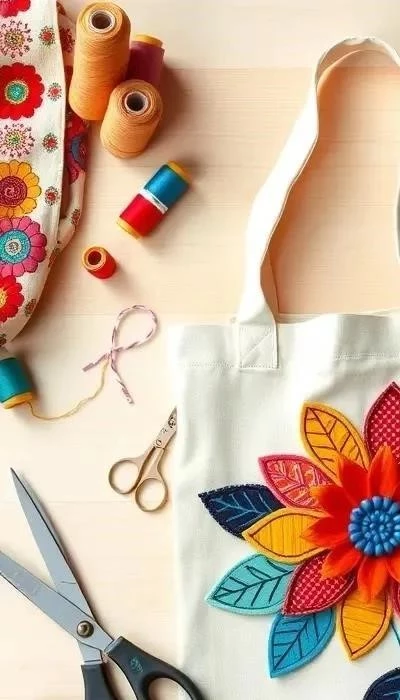1. Эскиз: Нарисуйте дизайн и перенесите его на ткань для аппликации. Вырежьте все детали. 2. Композиция: Разложите элементы на холщовой сумке, закрепите булавками. 3. Крепление: Пришейте детали вручную или на машинке. 4. Фиксация: Прогладьте утюгом.