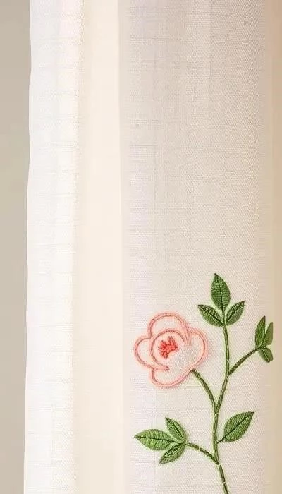 Часто используются цветочные мотивы, листья, ветви, абстрактные линии и геометрические узоры. Эта техника позволяет подчеркнуть фактуру ткани и придать занавескам элегантный вид. Как и в макраме, важна аккуратность и точность линий.