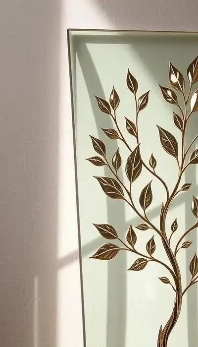- Украшение зеркал и фоторамок: Добавьте изюминку в интерьер, украсив зеркало. Это может быть изящная цветочная ветвь в углу или строгий геометрический орнамент по периметру. Простая рамка со стеклом превратится в уникальное панно, если нанести рисунок на внутреннюю сторону стекла в технике эгломизе.