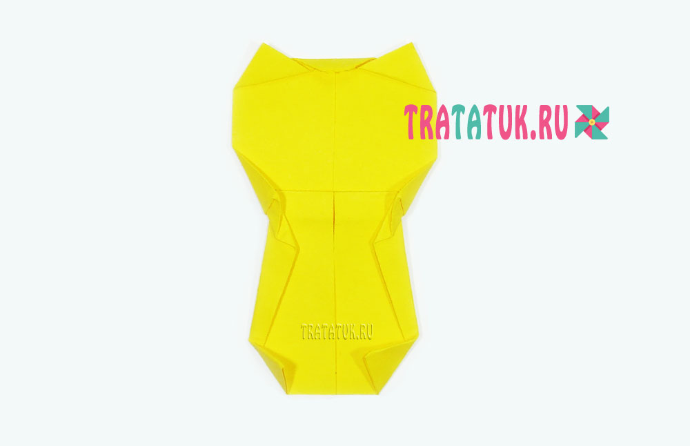 Приклейте их к туловищу сзади, дорисуйте лапы. Оригами медведь готов.