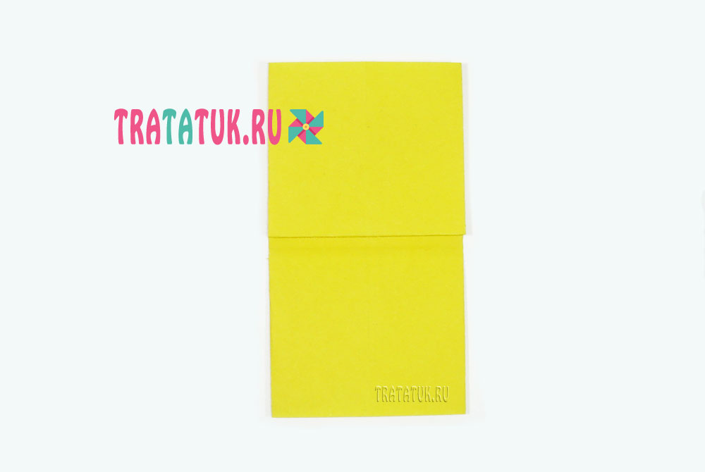 - Возьмите прямоугольный лист бумаги и сложите его пополам, соединяя длинные стороны.