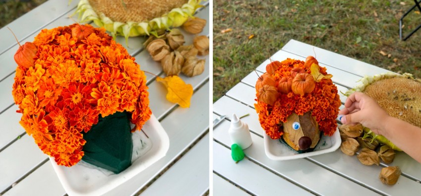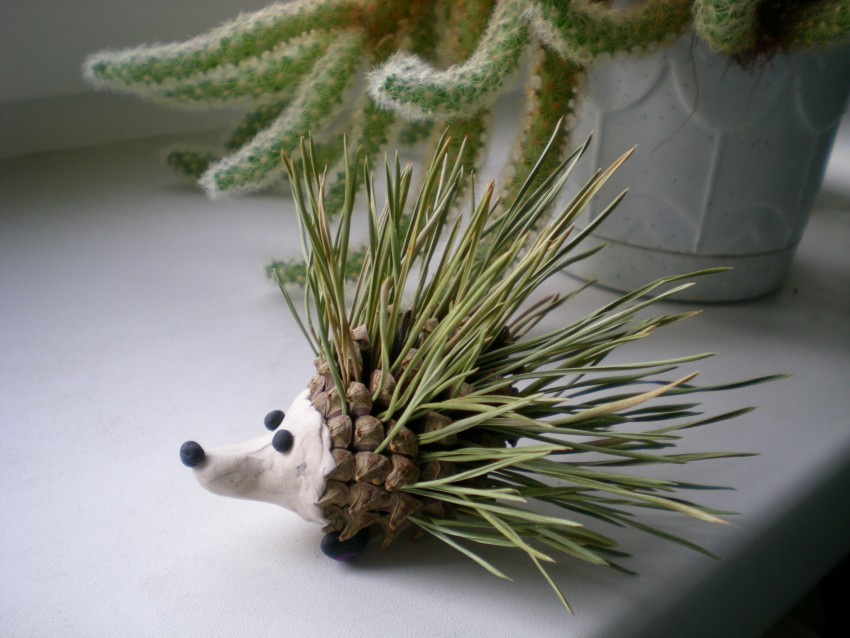 | Сплести из шишек и проволоки крышу в виде арочки, края проволоки хорошо закрутить при помощи плоскогубцев, срезать, концы спрятать внутрь | |