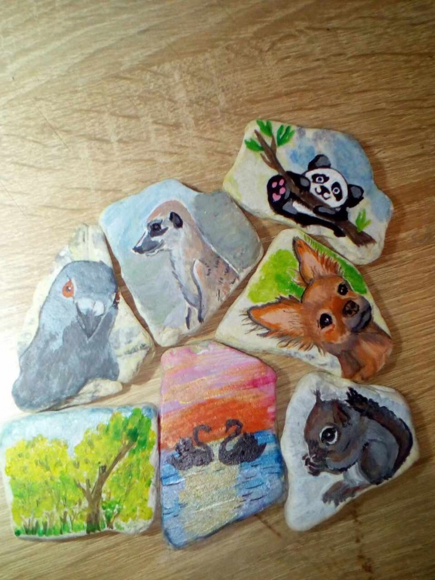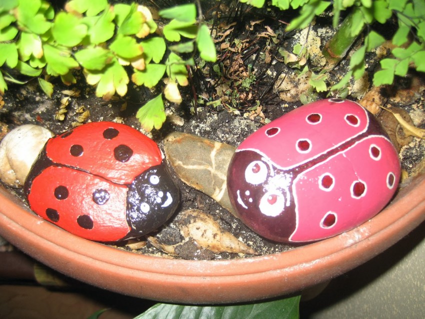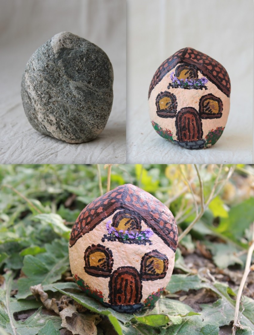 | Из камушков при помощи горячего клея выложить колодец с ведром на цепочке | |