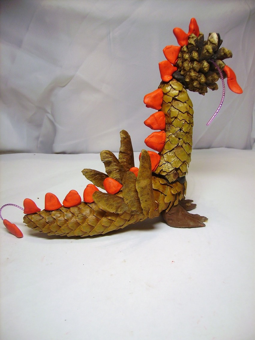 | Соединить две шишки между собой чешуйками и связать два раза проволокой, затем присоединить аналогично третью шишку | |