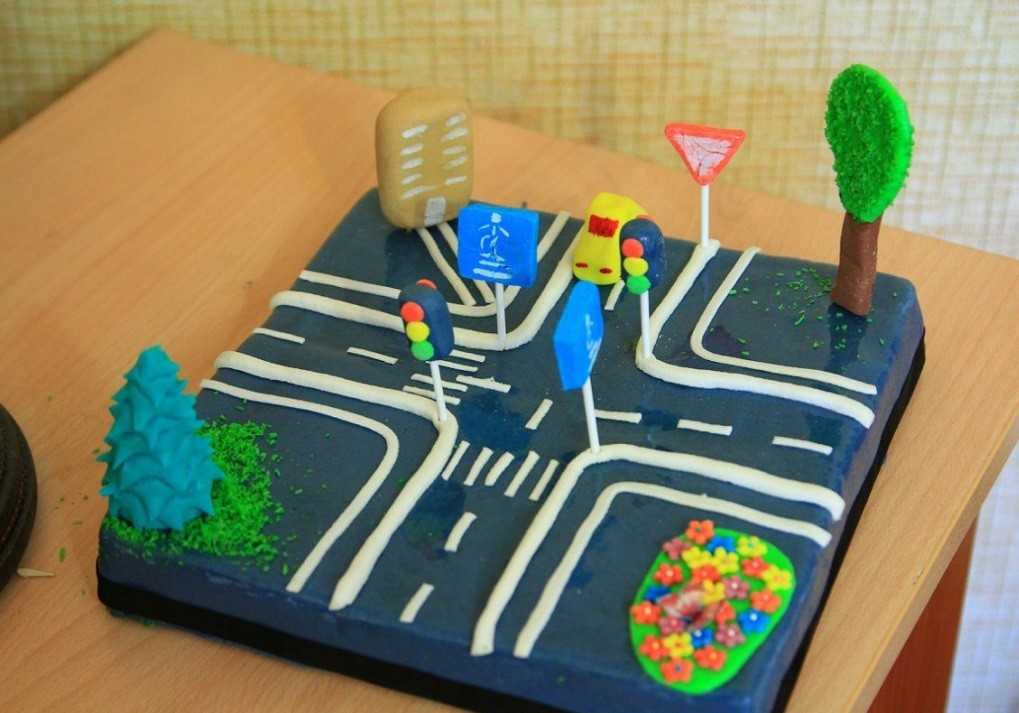 Старшим детям можно предложить нарисовать простой рисунок с крупными элементами на тему дорожного движения. Хорошо выглядят в этой технике большие поделки дорожные знаки.