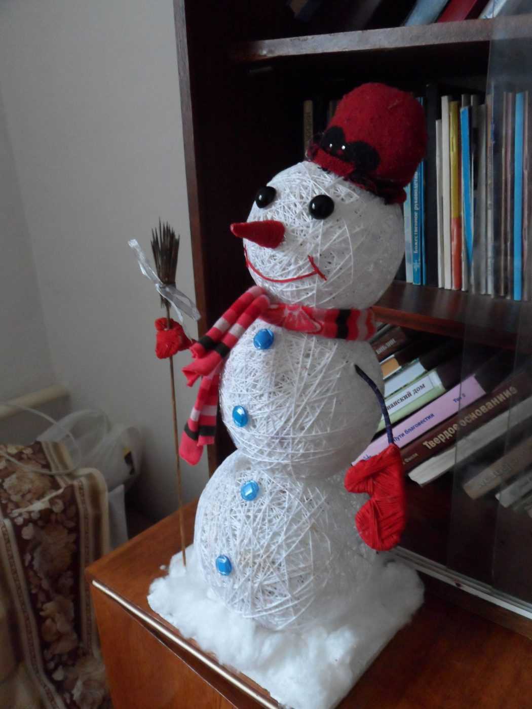 Мастер класс по изготовлению снеговика из ниток и клея