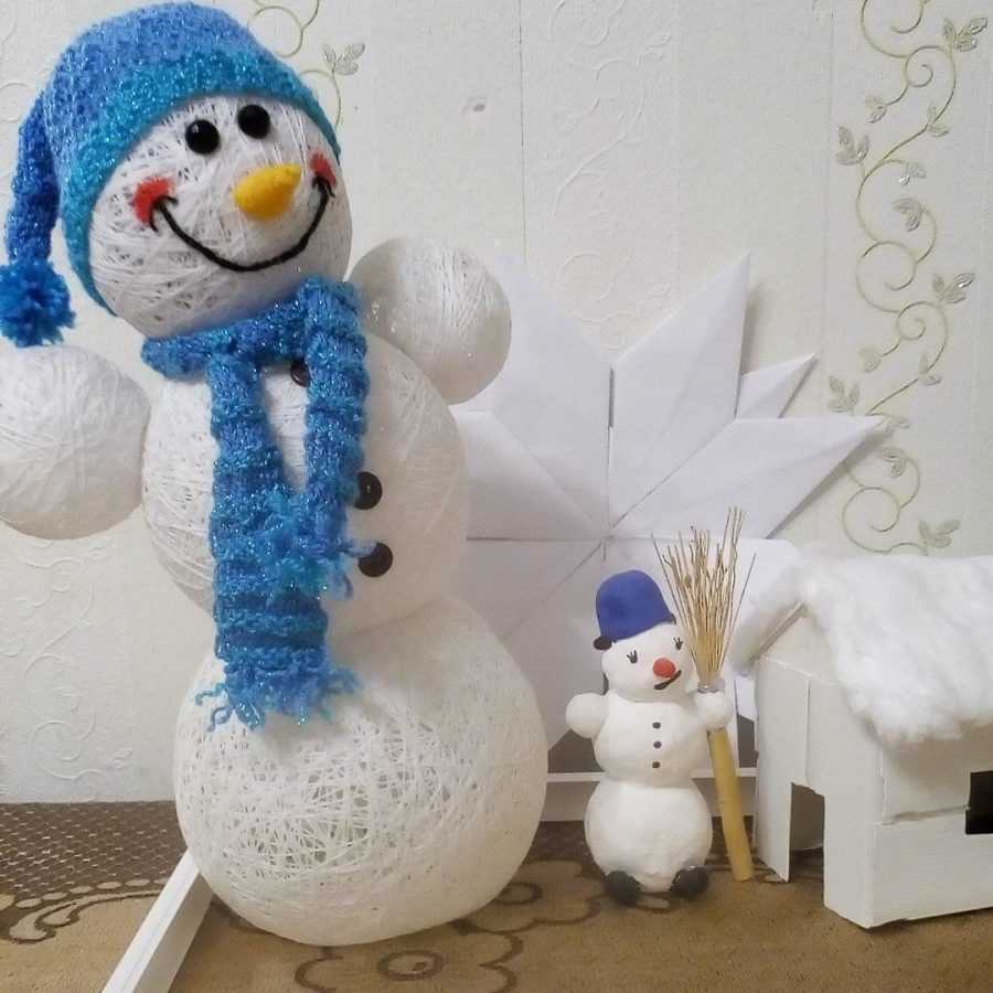 Отличный украшением дома может стать снеговик из ниток своими руками, который можно сделать с ребенком.
