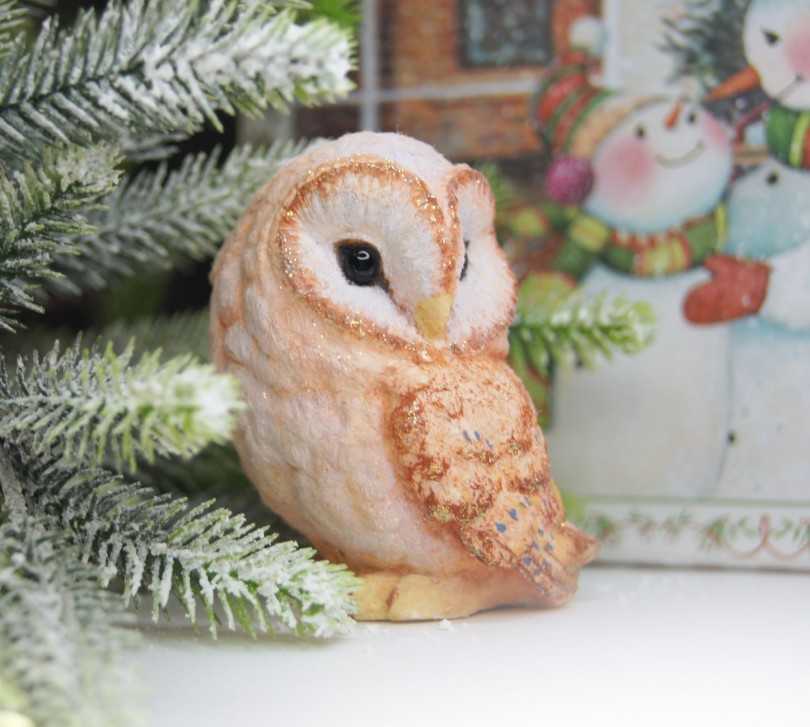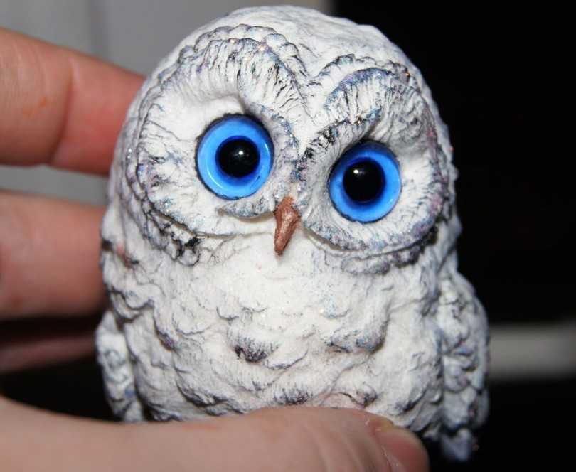 - После лепки нужно закрепить пластилиновые элементы на теле совы. Изделие готово! Можно дополнительно использовать элементы декора, например, посадить совушку на еловую веточку.