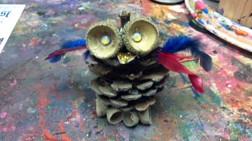 Сова из пластилина и шишки