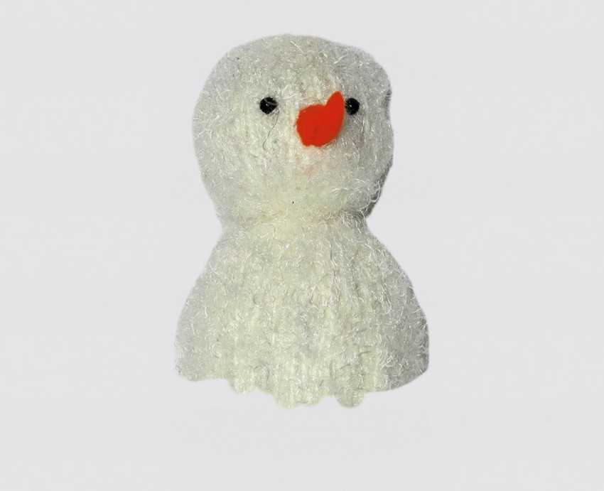 - После этого необходимо Снеговика приблизить к природному цвету. Для этого понадобится акриловая краска белоснежной расцветки. Покрываем ей все изделие и отводим время на сушку.