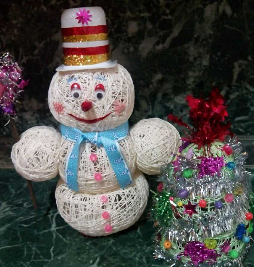 - Ручки делаем из веточек дерева, шляпку из цветного картона серого или коричневого цвета, а шарфик из любого отрезка ткани. Вот и готова наша веселая новогодняя поделка, созданная своими руками быстро и легко. Для школьников можно придумать много подобных изделий, которые они сотворят самостоятельно в домашних условиях. Возможно, это творчество перерастет в настоящее хобби вашего ребенка, а впоследствии и во что — то более серьезное.