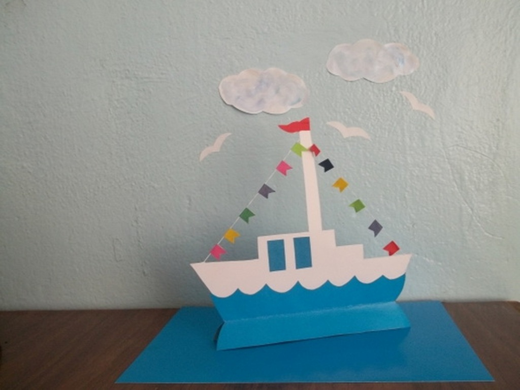 Если немного усложнить задачу, то в ход пойдут ножницы. С их помощью края открытки делают фигурными, на саму открытке можно наклеить разнообразные аппликации в виде цветов, звезд, кораблика, солнца, облаков, деревьев, домика. Родителям остается контролировать процесс и следить, чтобы малыш не поранился.