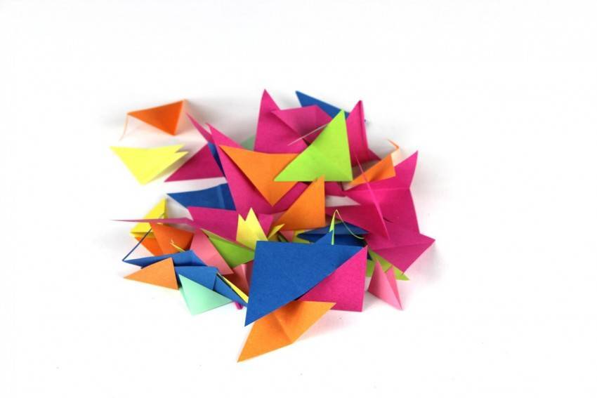 - Все изделия аккуратно кладут одно на второе, получается небольшая стопка бумажных треугольников.