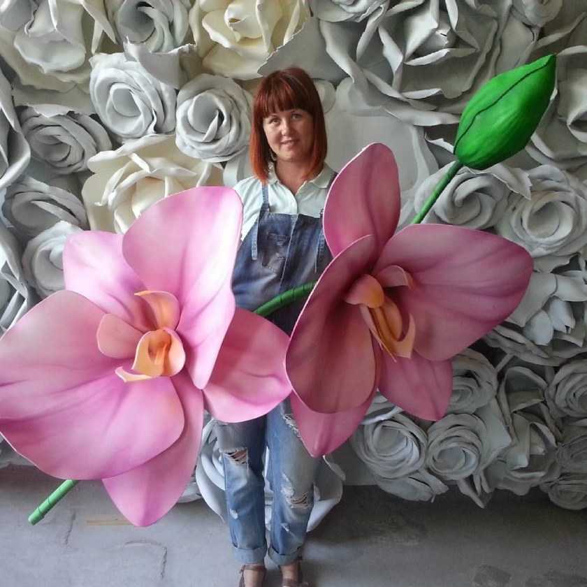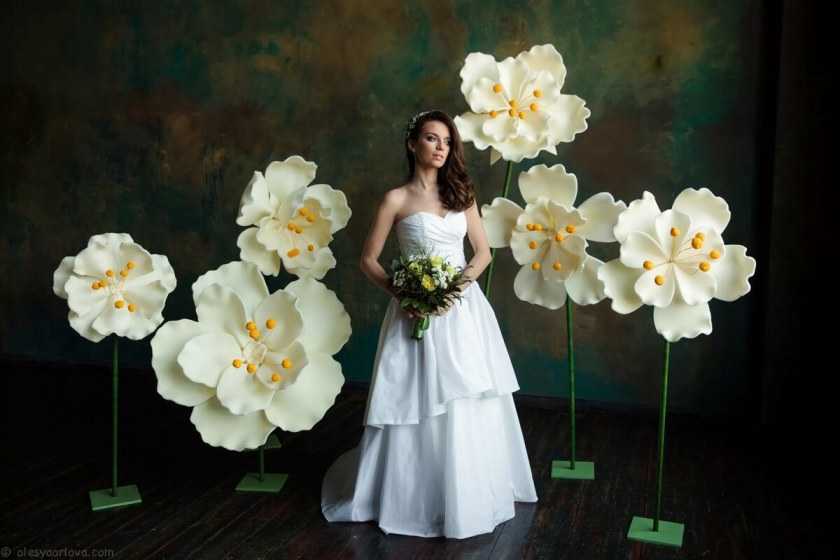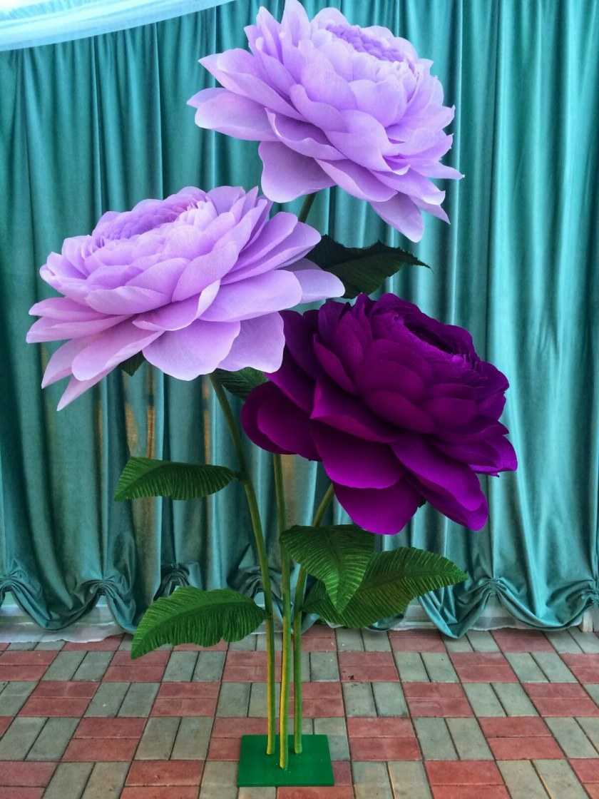 Изготавливают ростовые цветы по аналогии с классическими цветами обычных размеров.