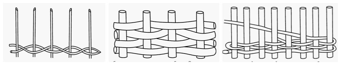 Простое плетение из газет – это прямые ряды из газетных трубочек, которые закладываются попеременно, то за одну, то за другую стойку. Загибы могут быть круговыми, многослойными (по несколько поперечных трубочек).
