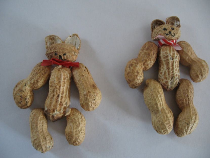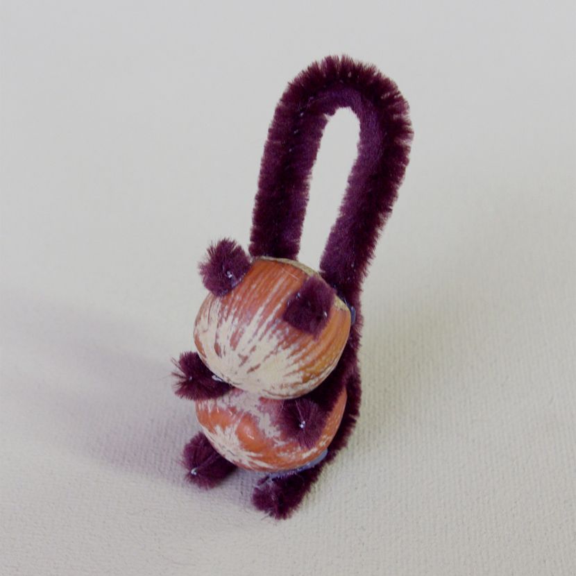 Эти симпатичные игрушки сделать не сложно. Для этой цели вам также понадобится скорлупа орехов. Соедините 2 половинки скорлупки между собой при помощи клея. Затем каждый орешек зацепите на веревочку. Используйте атласную ленту для украшения.