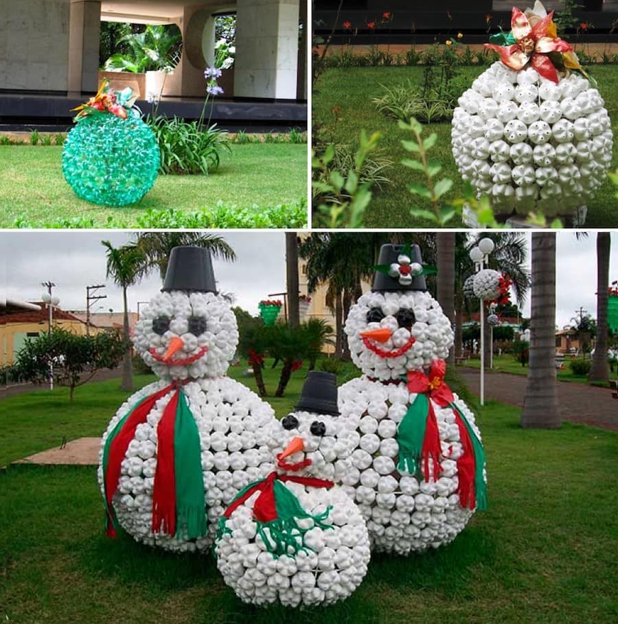 Превосходно украшают территорию шары, основными деталями для которых служат донышки, отрезанные от пластиковой тары.
