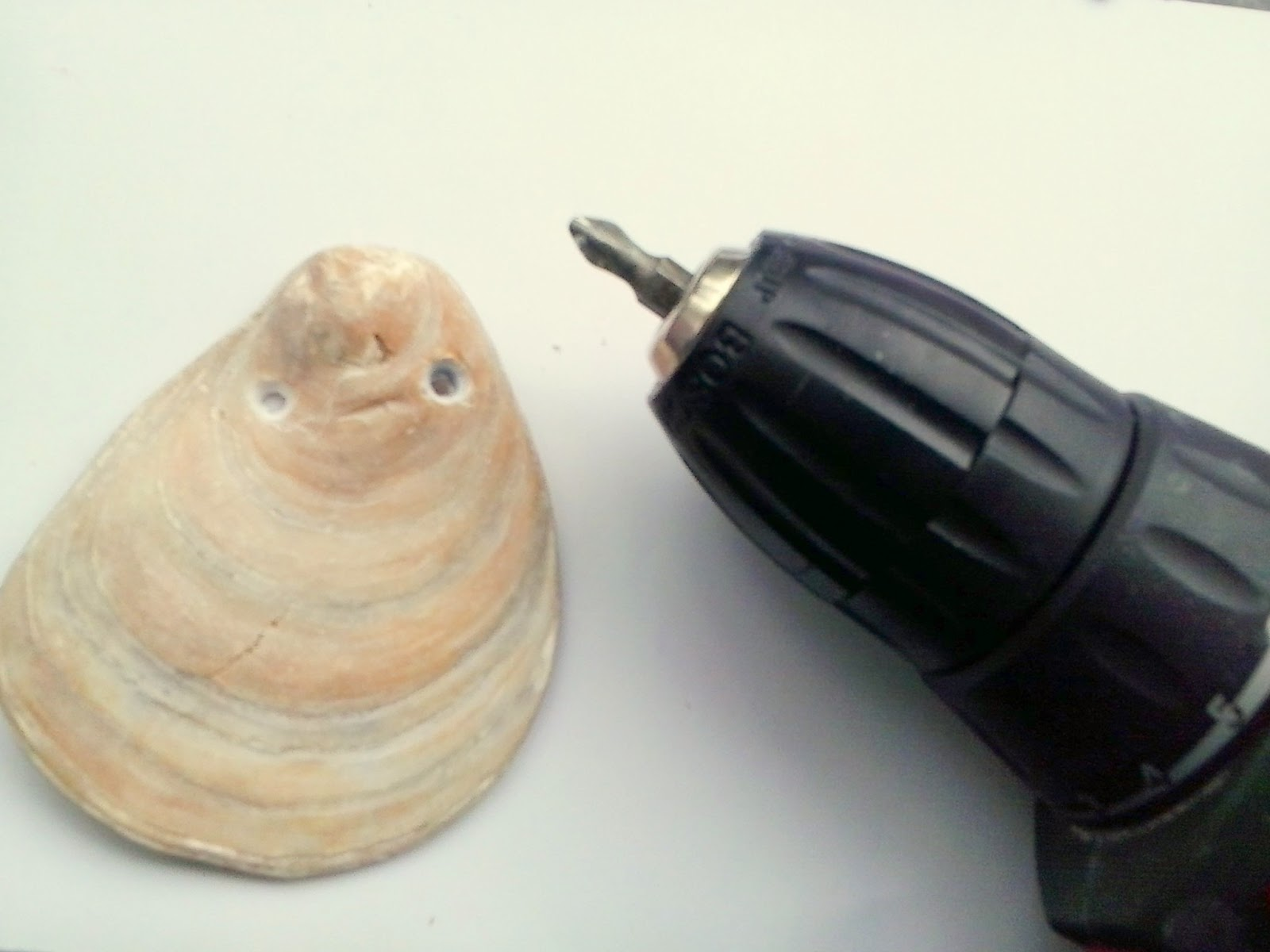 - Лучше зафиксировать ракушку липкой лентой и сверлить через нее.