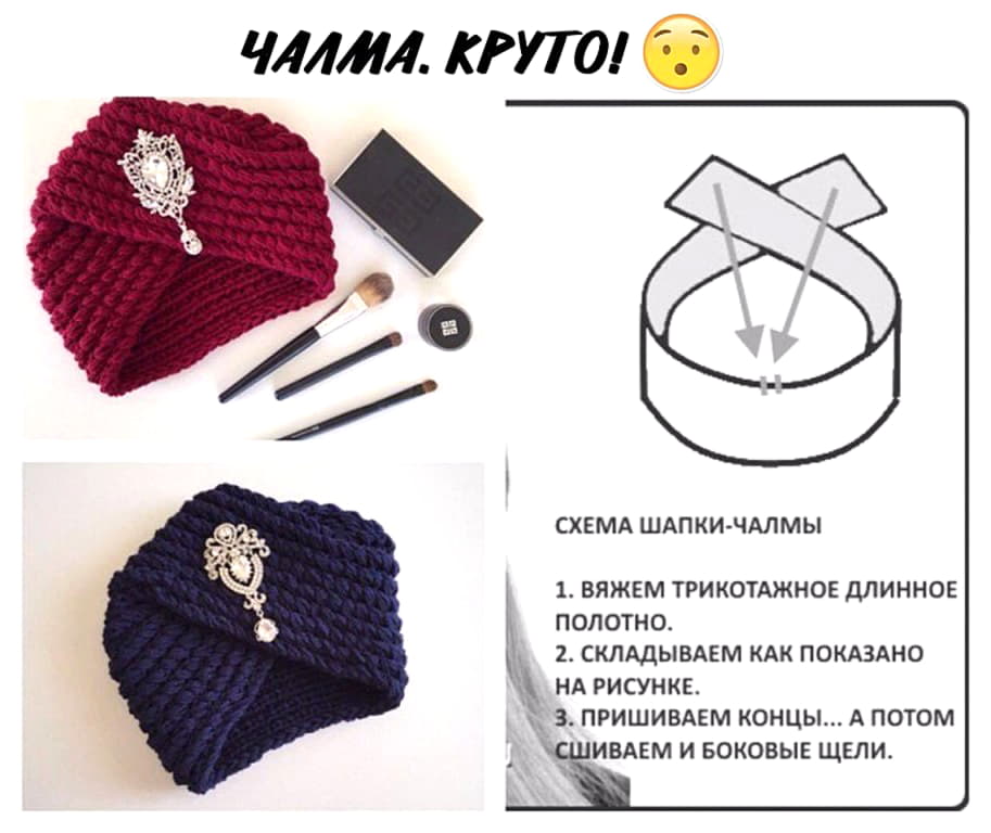 Чтобы реализовать шапку-чалму, следует использовать следующую схему вязания спицами: