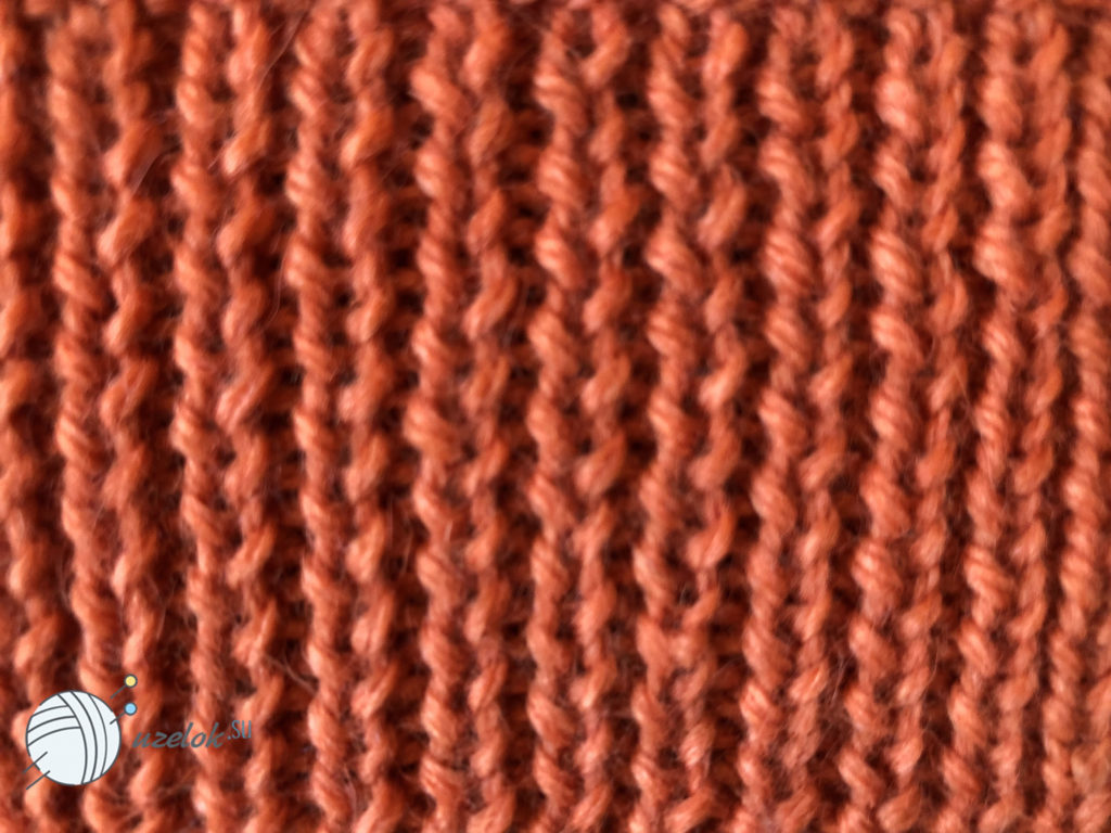 Выполняем на двух спицах. 1-й ряд: *1 изн., 1 лиц* – повтор до конца, в конце – 1 изн. 2-й: как смотрит вязка, т. е. *1 лиц., 1 изн* – повтор до конца, в конце 1 лиц. 3-й: *1 изн, 1 петля из нижнего ряда: