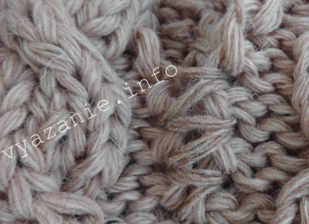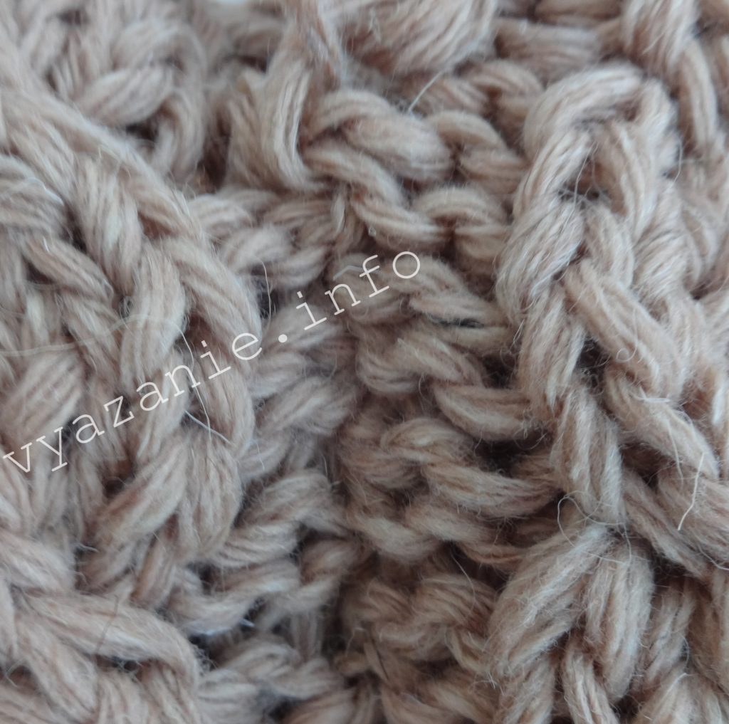 - Вязка такая же, как описано в первом случае, только вместо полустолбиков берем столбики б. н.