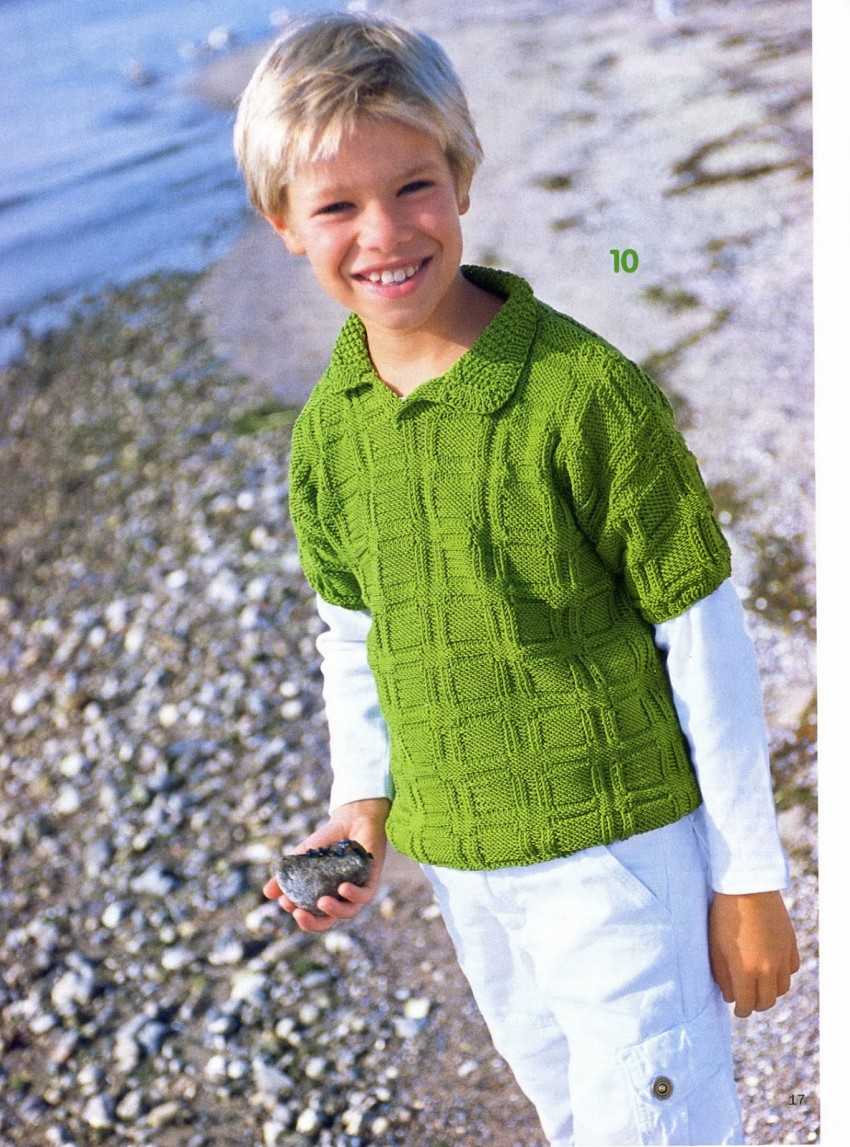 К примеру, свитер на мальчика, созданный патентной резинкой, идеально сочетает простоту выполнения, практичность решения, привлекательность и функциональность модели. Для выполнения 32-34 размера потребуется по 150-200 гр. пряжи голубого и темно-синего цветов (полушерсть 250 м/100 гр), спицы № 2 и 2,5, вспомогательная спица № 2,5.
