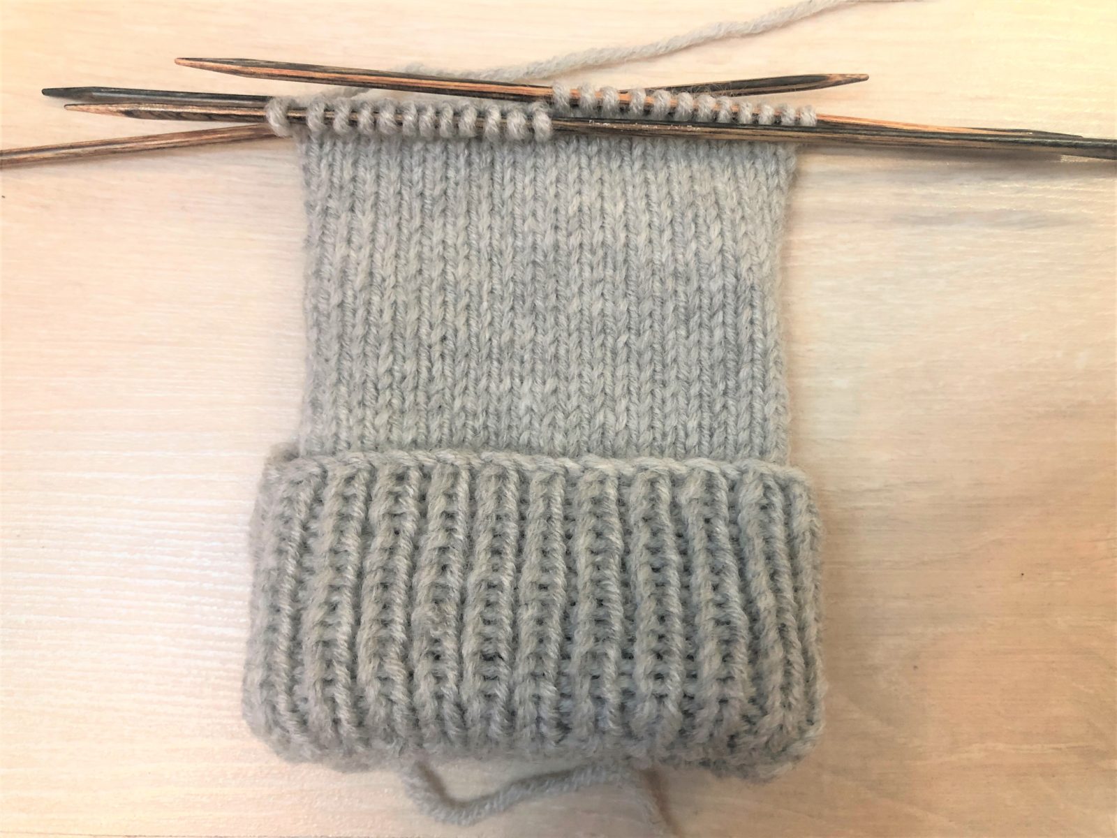 Провязать таким образом (с лицевой стороны – резинка, с внутренней – лицевыми) 35 рядов.