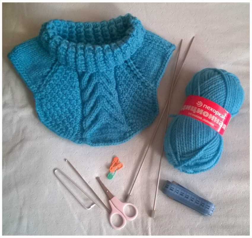 Для вязания используются мерки: высота горловины, обхват шей, длина плеча.