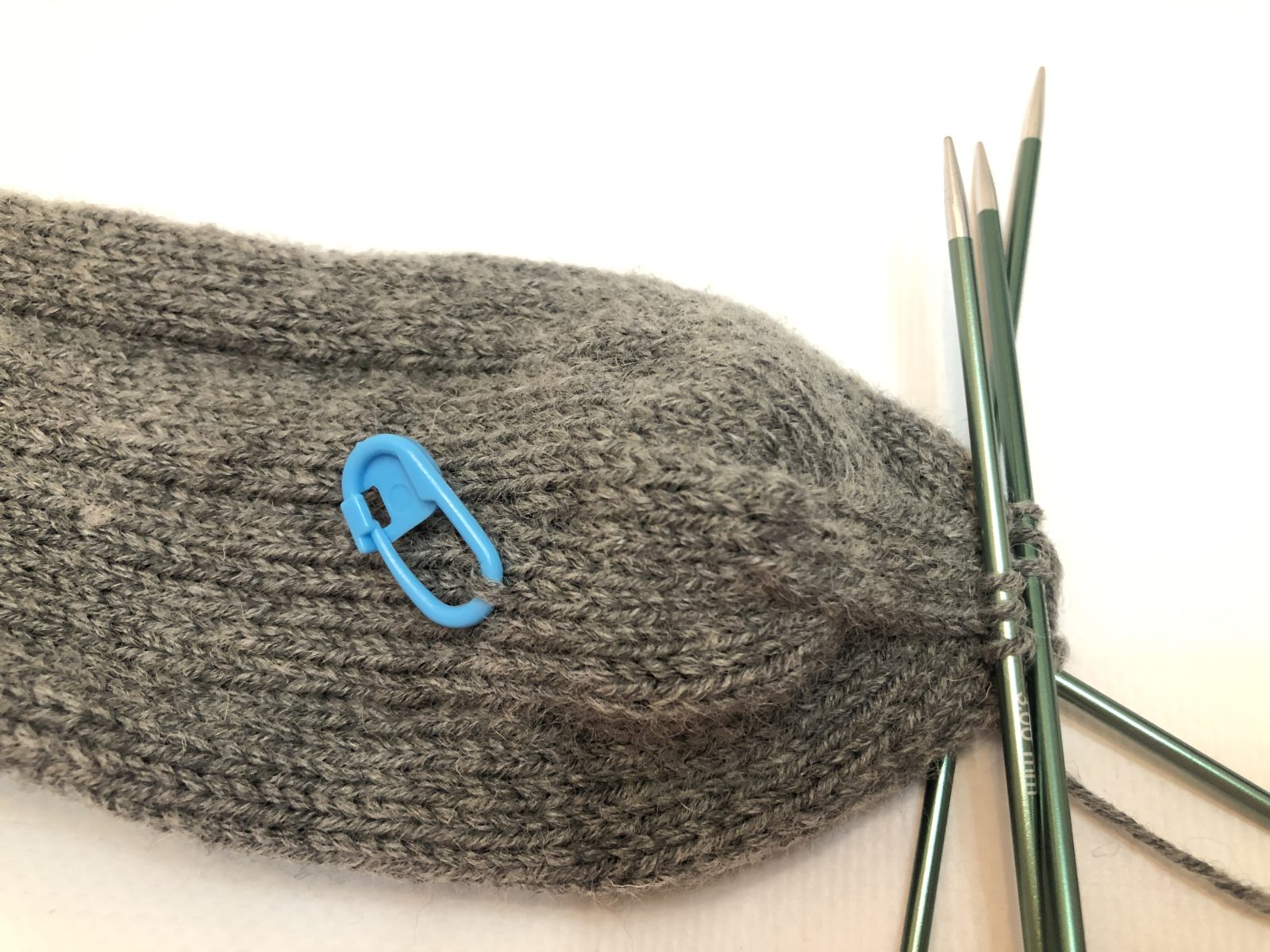 - Когда будут готовы обтягивающий сегмент и вершина носка на 5 вязальных иглах, то придет время заняться самой пяткой.