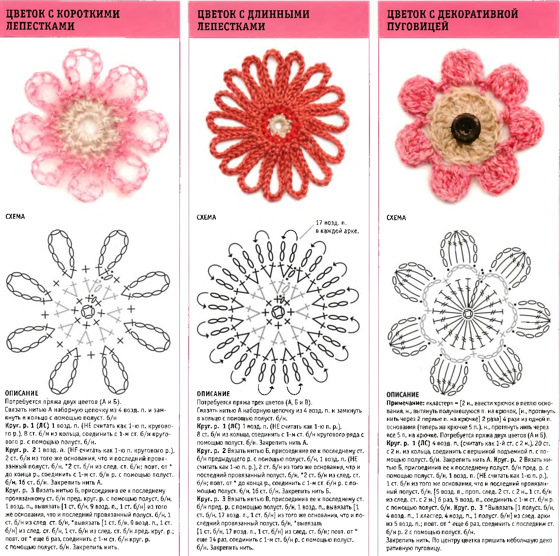 Работу начинаем с макушки в соответствии со схемой. Создаем кольцо из восьми воз.пет., замыкаем его и поднимаем вверх на три воз.пет. Во втором р. в каждую пет.пред.р. провязываем по два ст.с одним накидом. Во втором р. уже чередуем: в первый ст.пред.р. вяжем два ст. с одним накидом, во второй — один, и так до конца ряда. Не забываем, что каждый новый р.начинаем с трех возд.пет.подъема. Таким образом, делая прибавки, выполняем вязание с первого по десятый р. У вас получится макушка шириной в тринадцать сантиметров.