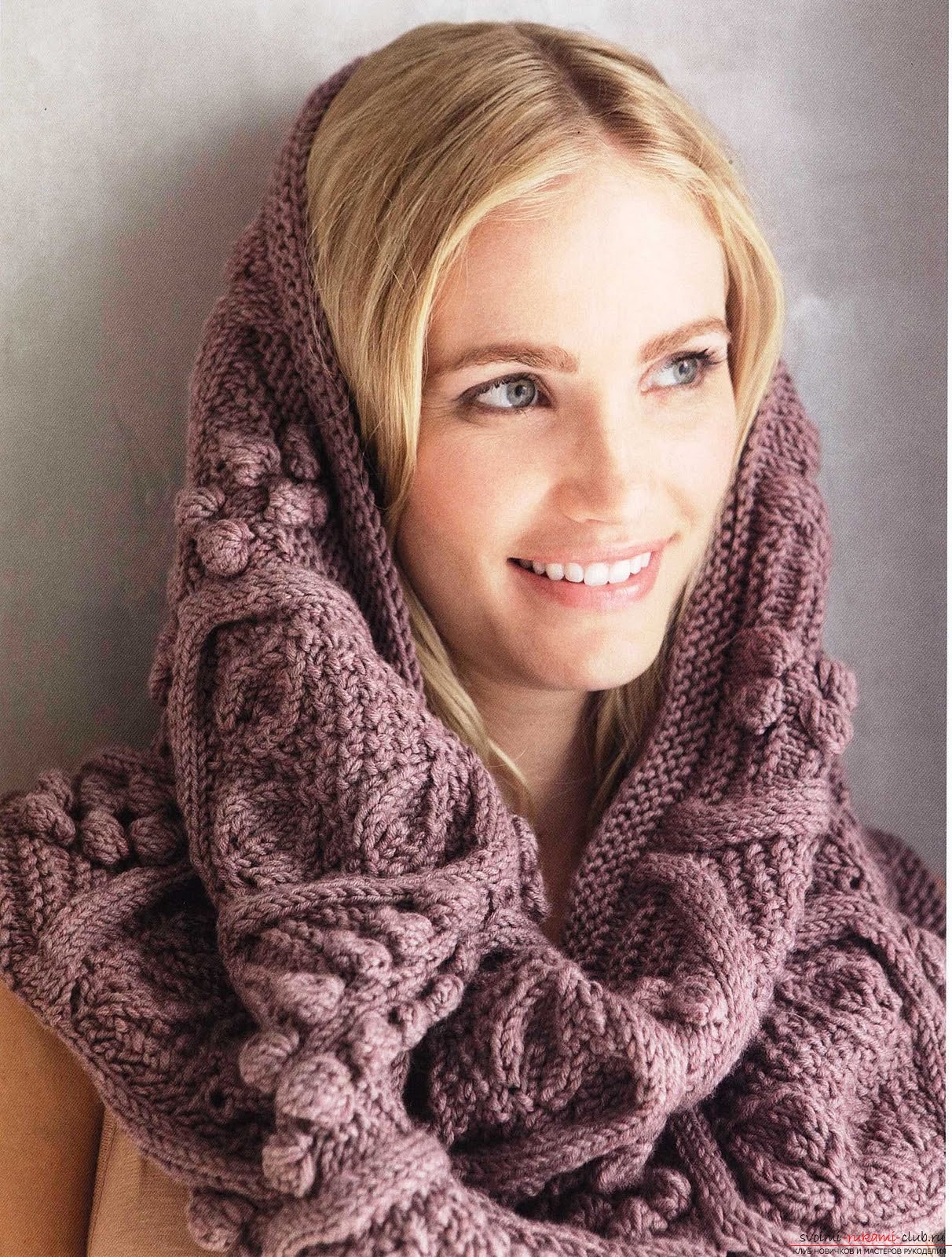 Шарф-хомут – аксессуар вполне самодостаточный. Использование в его создании простейших узоров позволяет достичь великолепных результатов: жемчужная резинка, обычная, шахматка — в итоге модель смотреться будет чудесно при каждодневной носке. Для более нарядного варианта стоит попробовать более сложные узоры, к примеру, ажурный. Но как носить такой замечательный предмет?