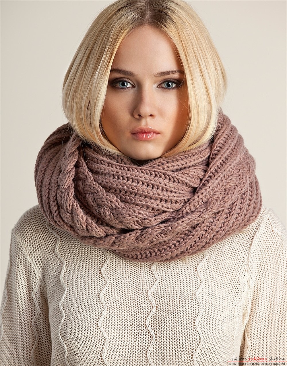 Чем толще пряжа, тем быстрее можно связать шарф-хомут.