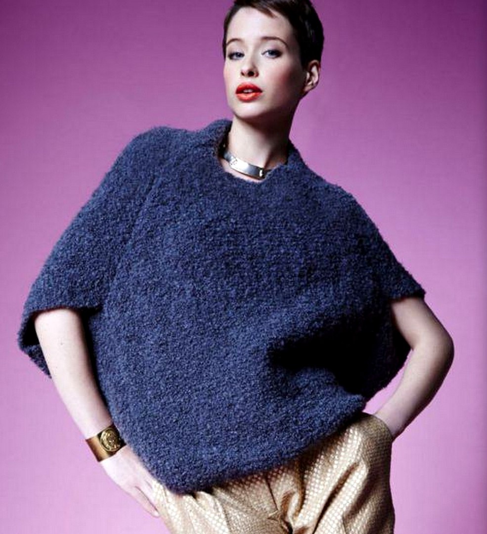 - Удобно, что вязать из нее можно простой вязкой (лицевой или изнаночной гладью, обычной резинкой, столбиками без накида), ведь узелки и участки неравномерного кручения создают рельеф сами по себе. Кроме того, сложные араны и ажуры “вплетать” в эти изделия просто нет смысла — узоры не будет видно. Но даже с самой простой вязкой вещи из буклированной пряжи выглядят очень интересно и эффектно.