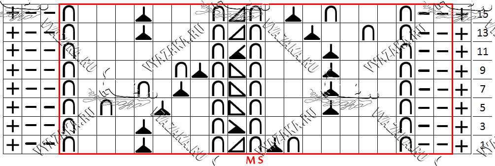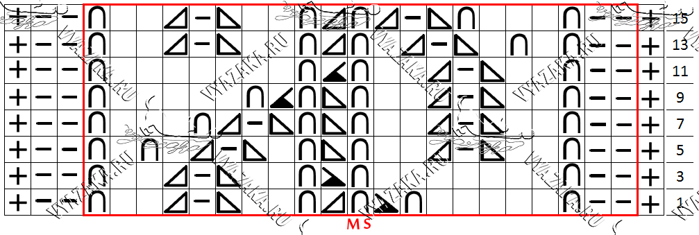 Ширина мотива 27 п., выполнять на фоне изнаночной глади.