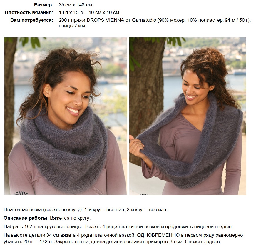 «Снуд-петля» с завязками также связан лицевой гладью — оригинально и неповторимо.