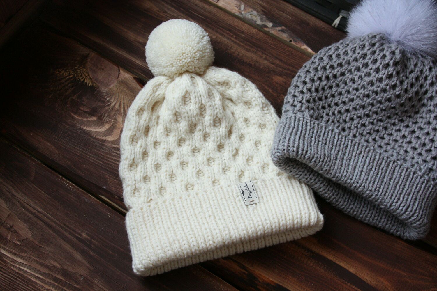 Большие пушистые помпоны украсят любую шапку, связанную спицами.