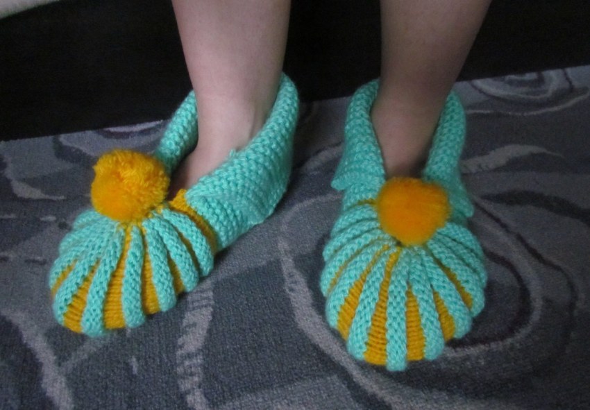 Красивые вязаные тапочки спицами, описание