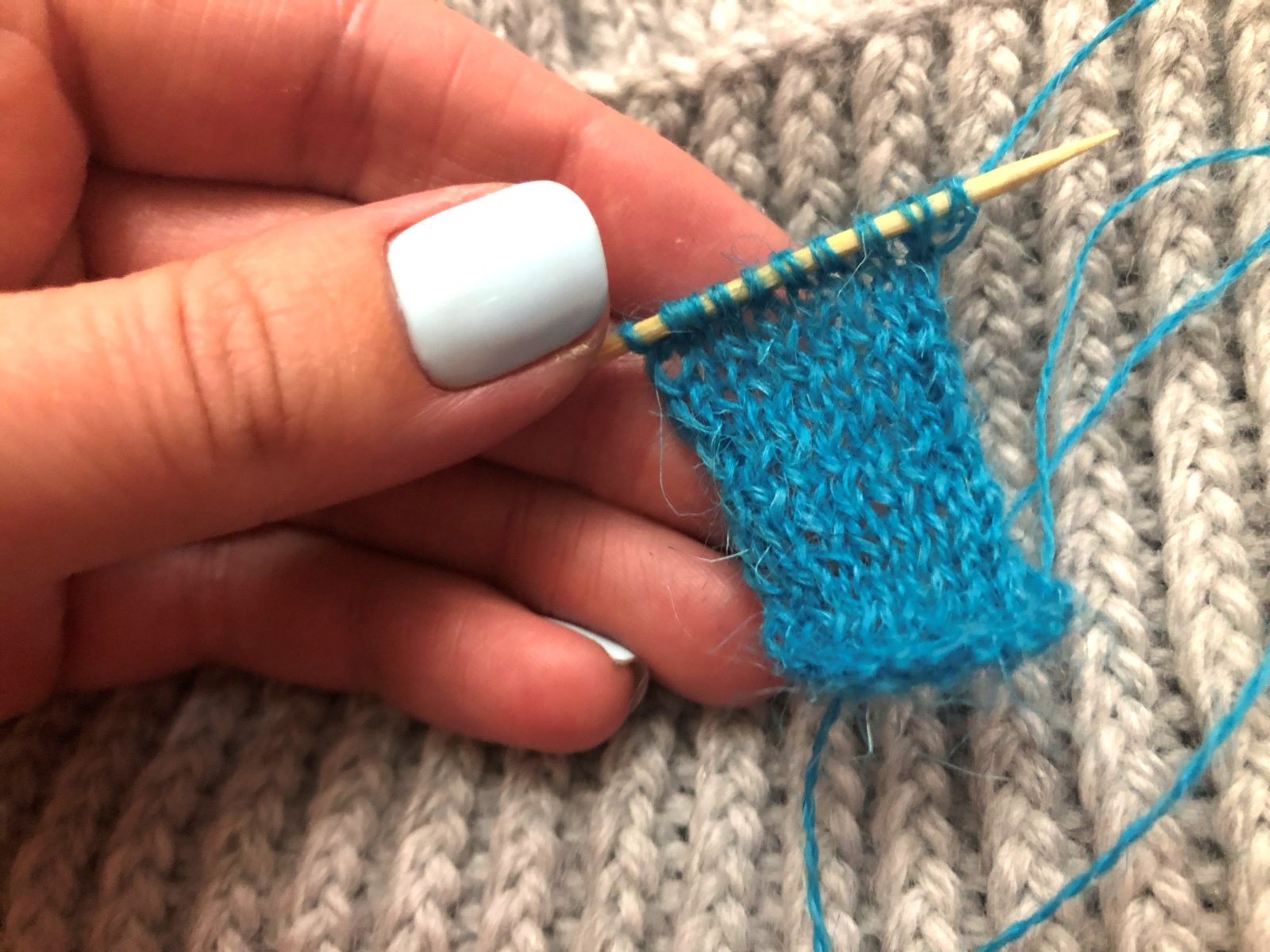 Вытягиваем одну спицу и вяжем прямыми и обратными рядами 18 рядов.