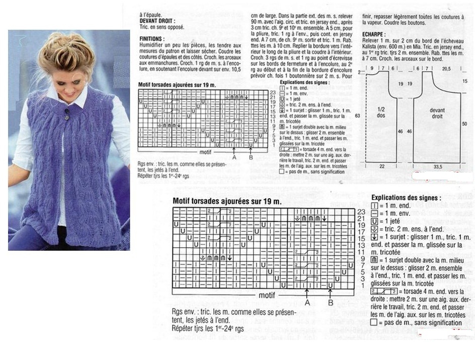 схема, описание вязаного спицами жилета для пышной дамы, пример 2