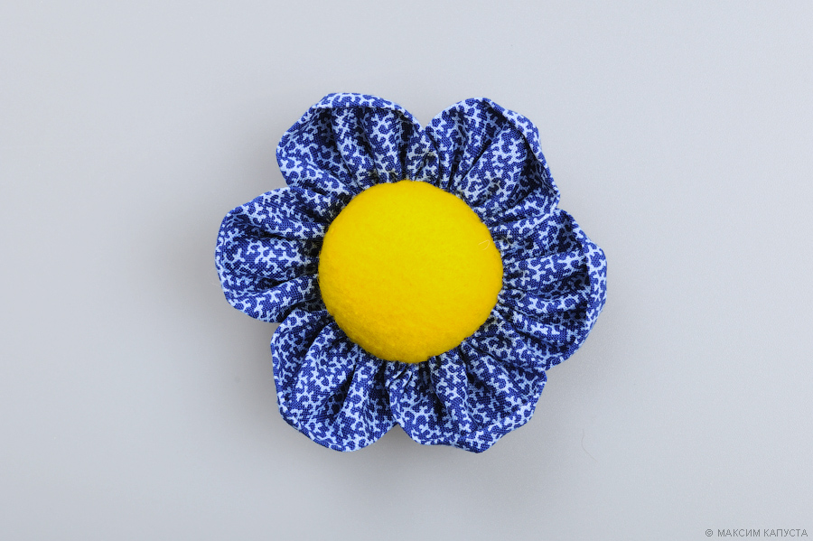 Наполняют пятиклинку, также как и простое бискорню, уделяя особое внимание уголкам изделия. Центр можно стянуть ниткой и украсить пуговичками или крупными бусинами, можно оставить объемным