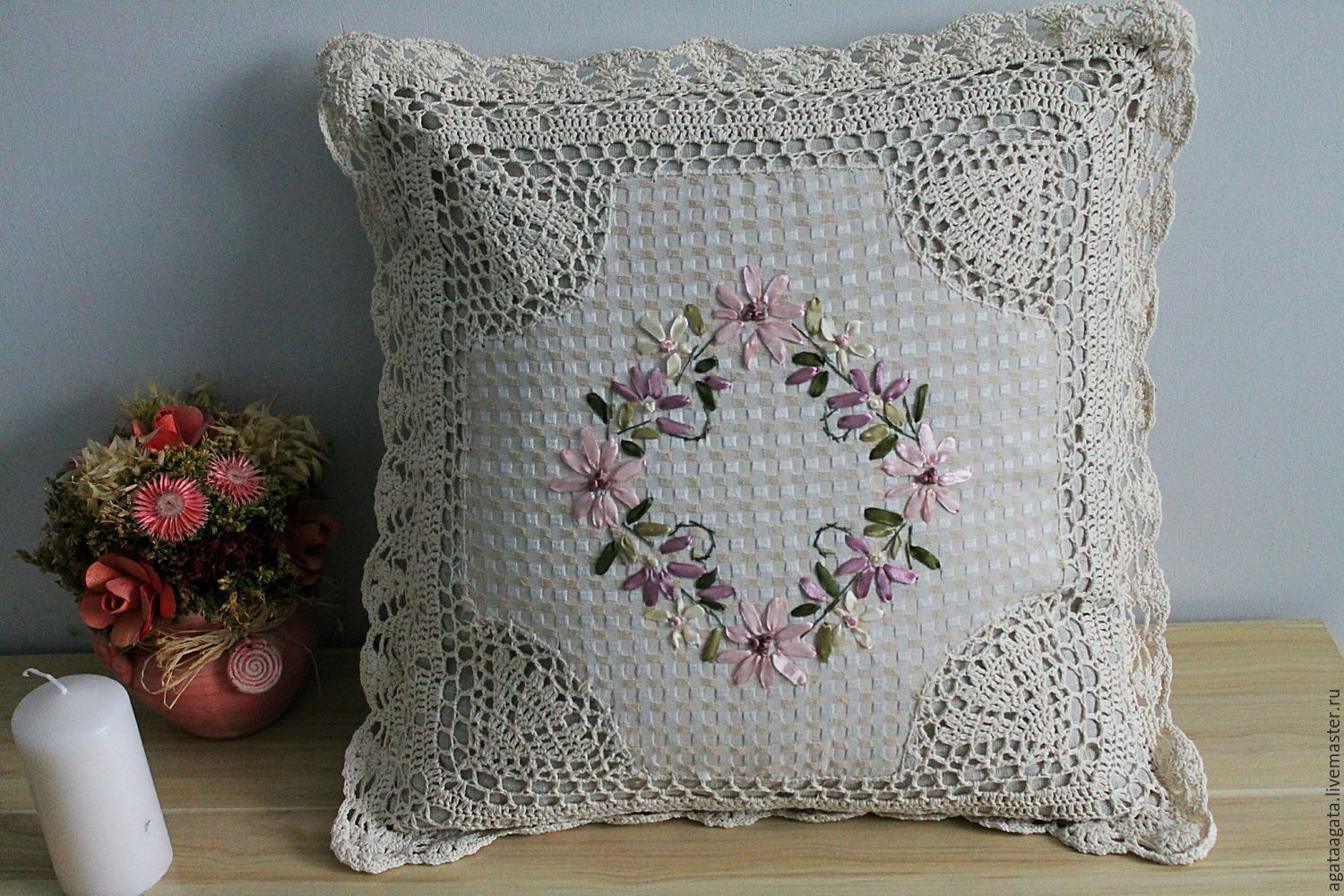 Для выполнения работы используются только натуральные материалы: хлопок, лён, бязь. Прованс объединяет вышивание крестиком, атласными лентами и неотразимым ришелье.