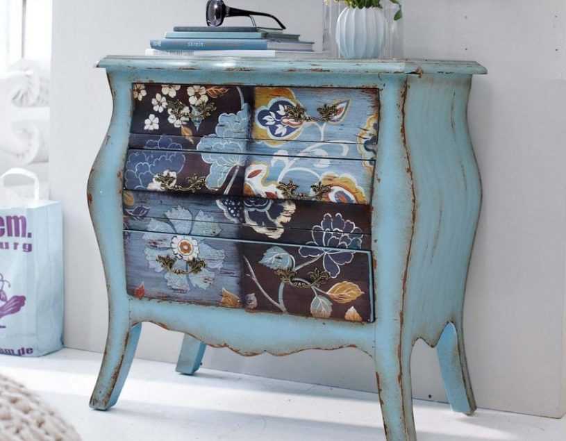 Для декупажа шкафа следует выбирать картинки, исходя из стиля помещения, в котором он будет находиться