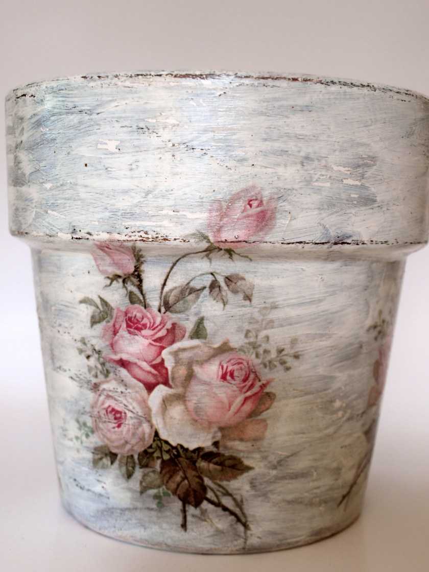 Дымчатый, или художественный, декупаж. Техника для тех, кто уже освоил основы, заключается в специальном окрашивании фона таким образом, что края приклеенного фрагмента теряются, и создается полное впечатление нанесенного рисунка.